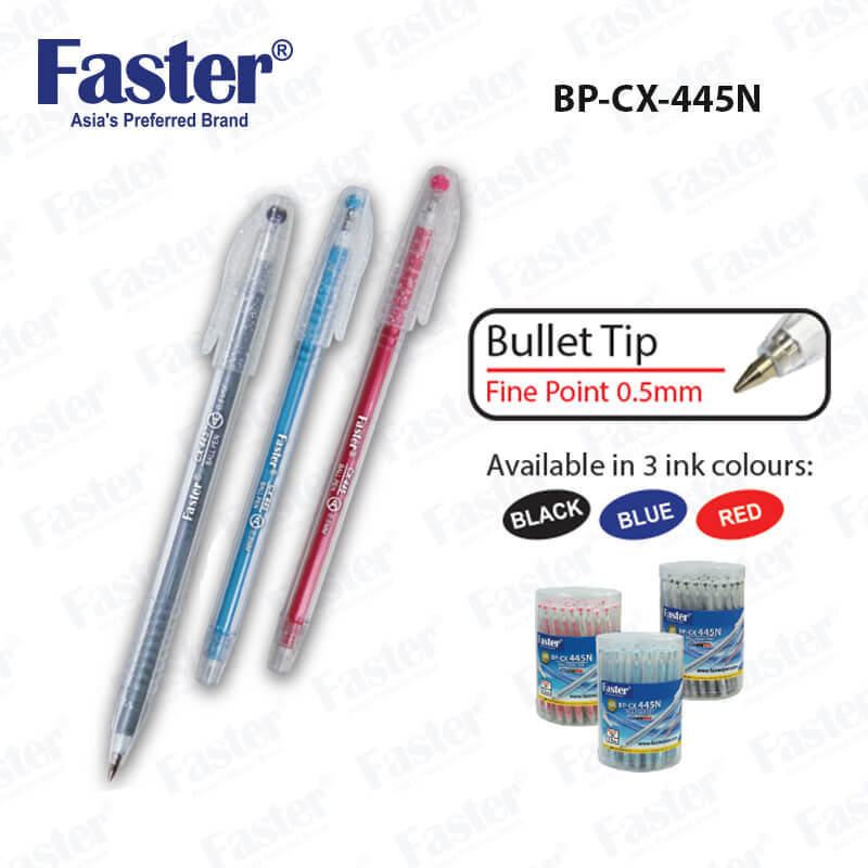 Categories: Bút - Mực, Bút bi - Bút gel, Bút bi - Bút Gel - Bút máy - Thước học sinh, Dụng cụ học sinh Tag: Bút bi FASTER BP-CX-445N-BL