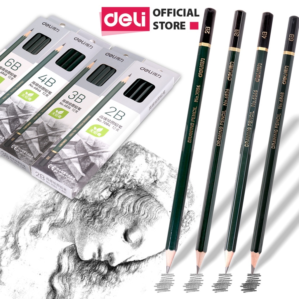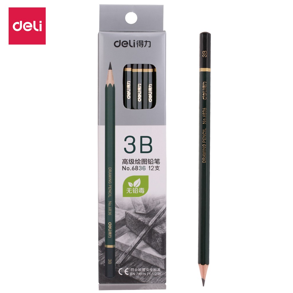- Thương hiệu: Deli. - Độ cứng: 2B. - Quy cách: 12 cây/hộp. Lõi bút được làm bằng than chì đen nhánh. Độ cứng 2B, cho chất lượng nét viết đẹp, rõ nét.