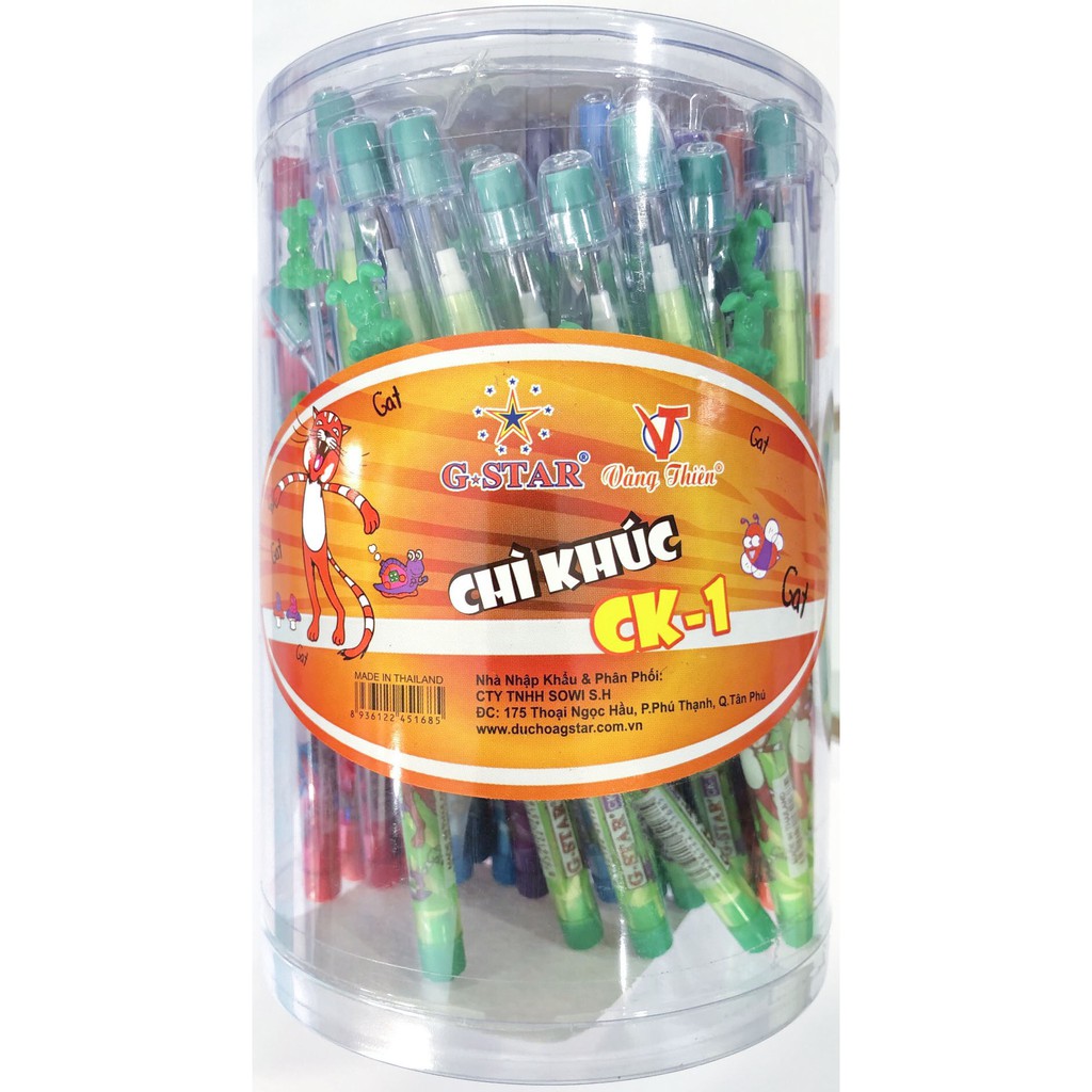 - Bút chì khúc G-STAR được thiết kế đơn giản, có nắp đậy, trên nắp có gôm tẩy. Sản phẩm được đánh giá cao bởi tính tiện dụng. Lõi bút gồm nhiều khúc chì gắn trên đế nhựa, dễ dàng thay đổi khi đầu chì đã mòn.