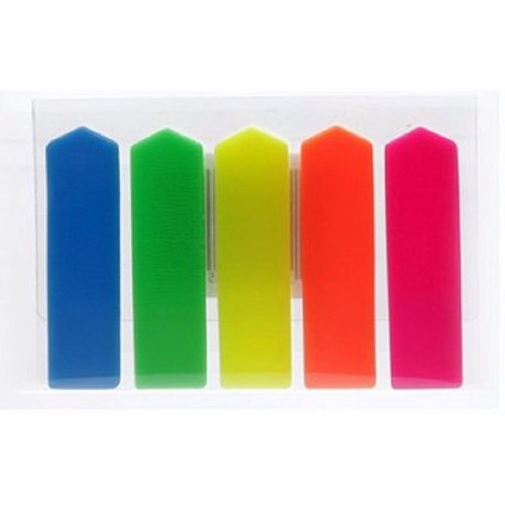 Quy cách : 1 vỉ gồm 5 tép nhỏ với 5 màu dạ quang trong đó 1 tép nhỏ có 20 miếng phân trang. Kích thước : 20mm x 50mm
