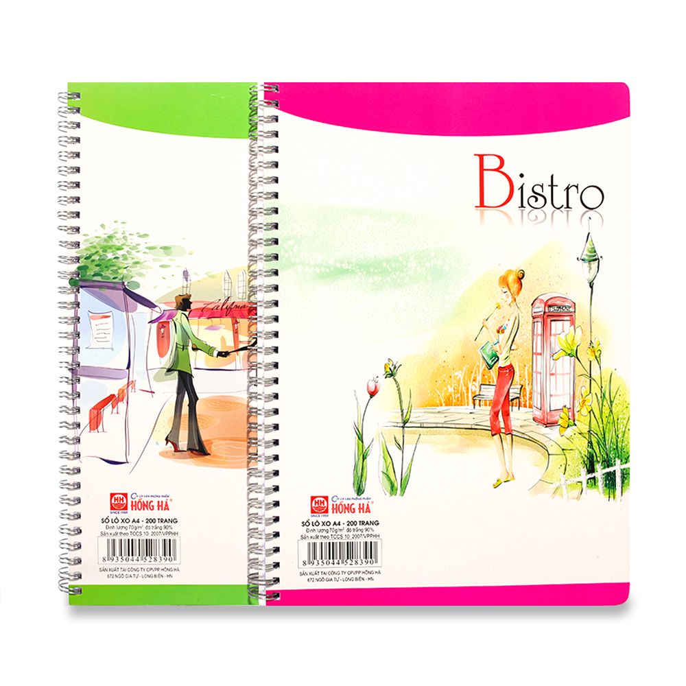 Sổ lò xo Bistro A4 Hồng Hà loại 200 trang, kích thước 210x297mm, có gáy lò xo thuận tiện, màu sắc trẻ trung thích hợp cho các bạn học sinh, sinh viên và văn phòng.